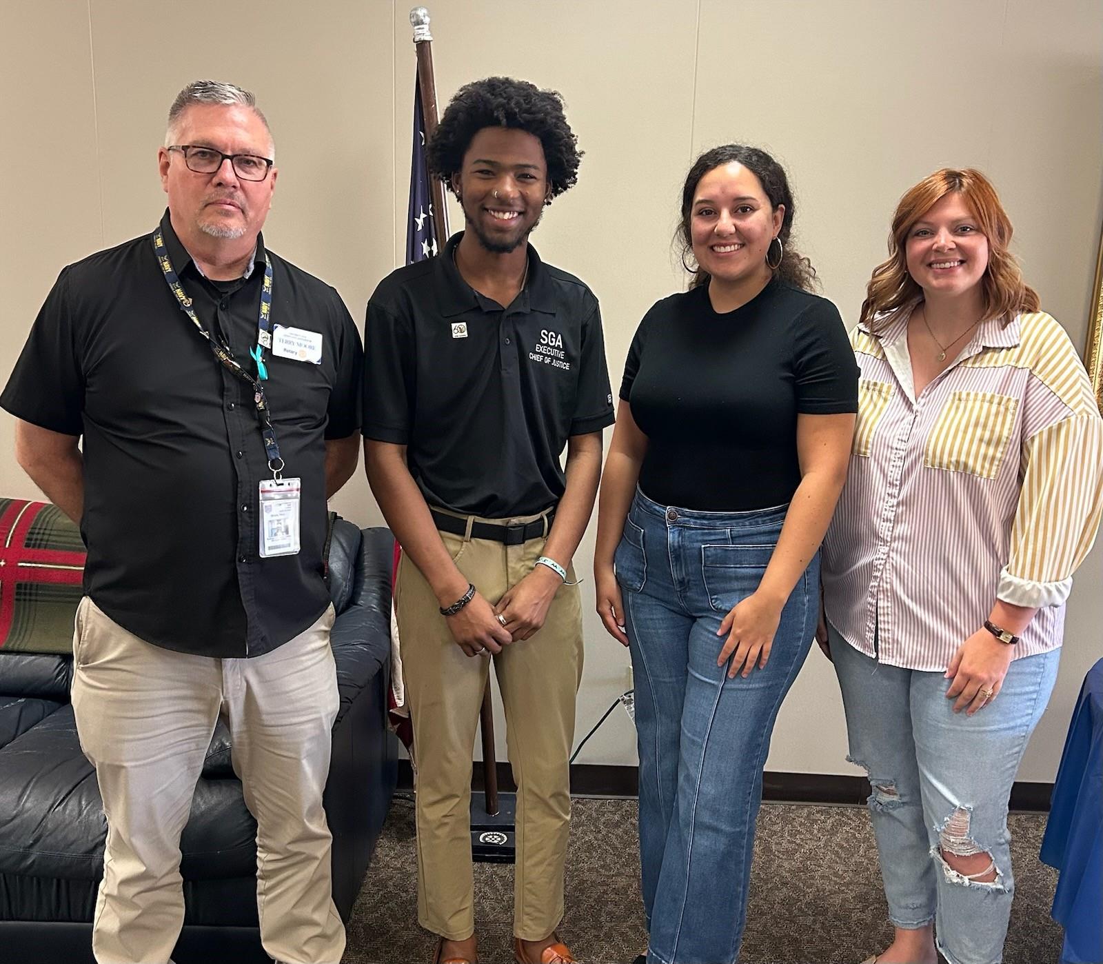 Terry Moore, Rotary Assistant Governor, joined Student Government Association Chief Justice and Student of the Week, Taran Richardson, for Rotary at Interbank in Guthrie.